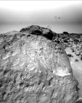 Vista de la roca Moe. Pueden apreciarse en su superficie unos agujeros excavados probablemente por la erosión del viento, análogos a los ventifactos terrestres.