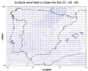 Mapa de vientos.Sin embargo, a pesar de que aquí sólo podemos hilvanar los campos en los que actualmente se desenvuelve la teledetección (y nos hemos dejado muchos que no tienen relación con la astronomía: seguimiento de cultivos forestales, de especies marinas, corrientes oceánicas, etc.), lo que sí podemos es animar a los aficionados a la astronomía a acercarse a este mundo. Lo que se puede aprender de tratamiento digital de imágenes es útil para todo aquel que quiera realizar algo útil hoy en día, los conocimientos necesarios para el relieve terrestre valen para otros cuerpos rocosos del sistema solar, y las técnicas físicas para la captación y proceso de la información también son comunes.